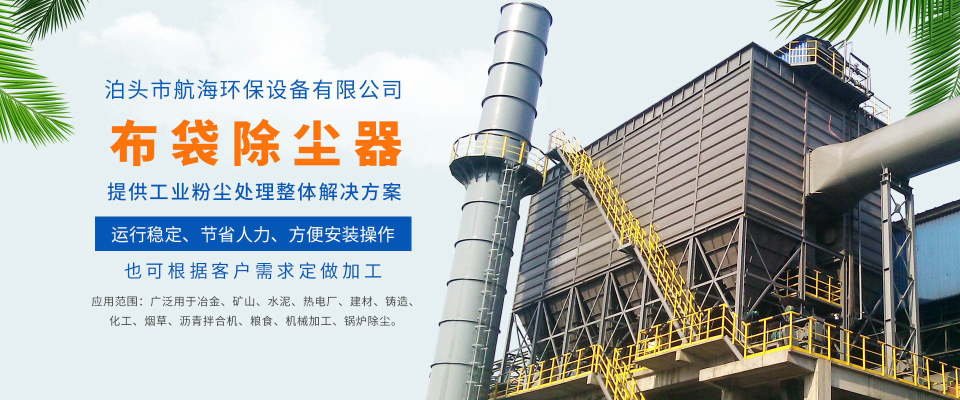 航海環(huán)保設(shè)備有限公司主要生產(chǎn):布袋除塵器,單機(jī)除塵器,旋風(fēng)除塵器,脫硫除塵器,木工除塵器,鍋爐除塵器,礦山除塵器,靜電除塵器等除塵設(shè)備,以及除塵器骨架...